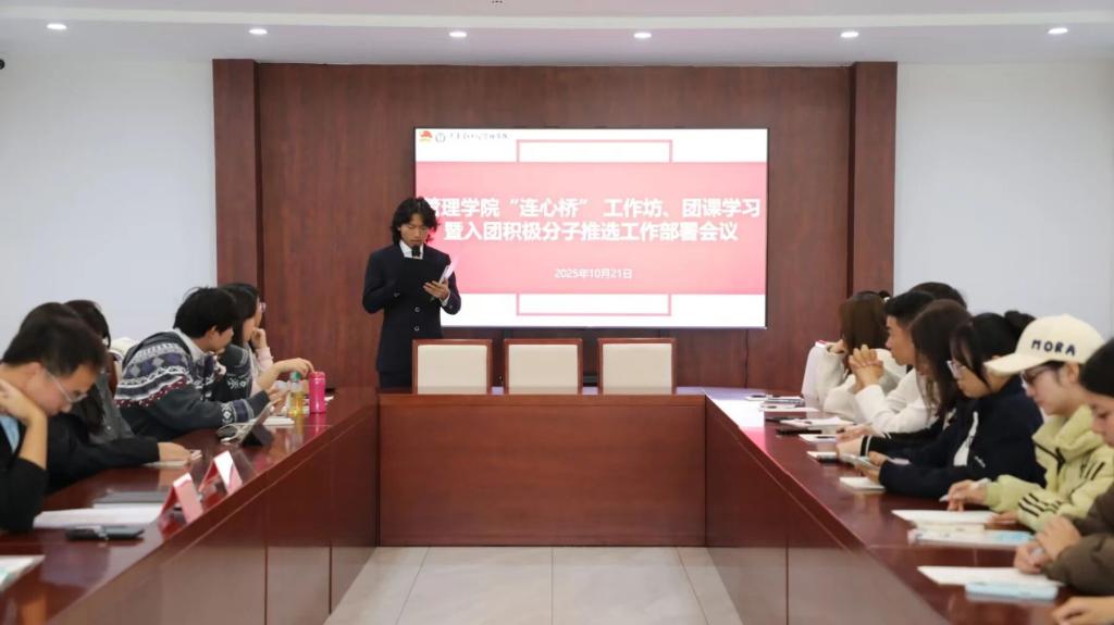 为进一步提高团学干部的业务能力和工作本领、规范入团工作、筑牢思想信念,管理学院于10月21日在南区一站式举行2025 年 “连心桥” 工作坊、团课学习暨入团积极分子推选工作部署会议。学院党委副书记周伟军、团委书记于世川出席本次会议,2025级团支书以及团委学生会主要干部参加活动。