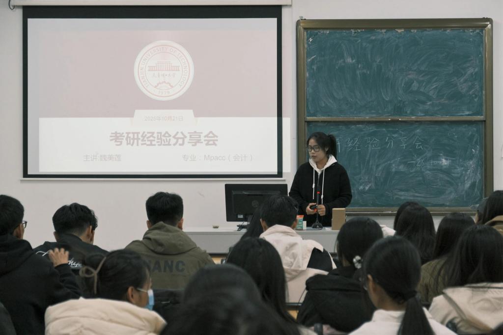 为帮助2026届考研学子明确备考方向、掌握科学复习方法、增强考研信心,营造积极向上的学风氛围,管理学院于10月21日成功举办“研途相伴·薪火相传”考研经验分享会。本次分享会特邀在2025年考研中成绩优异的6位学姐,围绕院校选择、复习规划、心态调整等内容展开深入分享,现场座无虚席,气氛热烈。