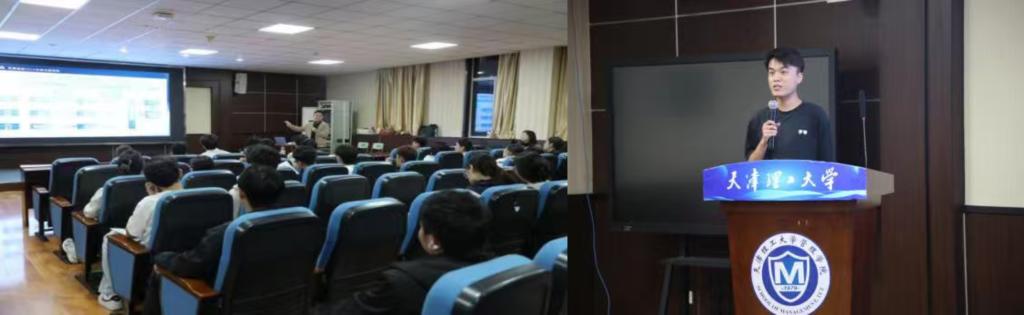 10月15日,管理学院邀请亚厦集团联合举办“筑梦亚厦100人才工程-天津站”校园招聘宣讲会。亚厦集团负责人系统介绍了企业发展历程、业务版图及经典项目,重点阐释培养路径、晋升通道与成长前景。同时,学院2025届优秀校友、现任亚厦集团装饰核算岗李维恒分享了求职招聘经验,增强学生求职信心。互动环节,招聘团队就岗位要求、工作内容、企业文化等答疑,活动气氛热烈。最终,15名学生与企业达成录用意向,现场签约三方协议。