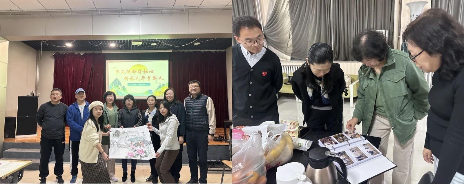 学院举办重阳节茶话会活动,邀请退休老教师共聚一堂,共话今朝。学院精心布置活动室,退休老教师们围坐一堂,翻看老照片,回顾往昔。同学们现场描绘重阳节主题国画,为在场的老师们送上真挚的节日祝福。