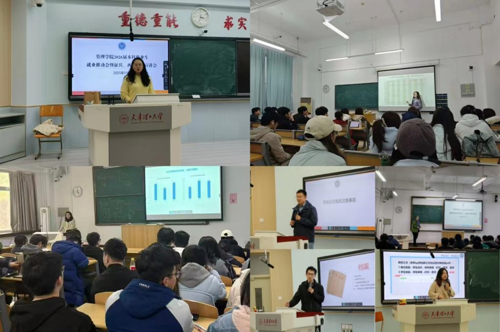 为深入贯彻党中央、国务院及学校关于毕业生就业工作的决策部署,将就业推动工作做实做细,帮助学生做好职业生涯规划,树立正确的就业观、择业观。近日,管理学院开展了2026届毕业生就业推动会,学院本科生、研究生毕业年级班主任、辅导员以及2026届毕业生参会。