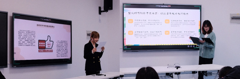 展示现场,各参赛队伍按抽签顺序依次登台,通过演示文稿、视频、现场讲解等多种形式,全方位、多角度地展现方案的策划思路、实施流程与特色亮点。师生评委认真聆听每一支队伍的展示,近距离观摩方案细节,直观感受同学们的创意巧思与表达风采。同学们从容自信、条理清晰,将自身的创意理念生动传递,现场氛围热烈有序,师生间的交流互动轻松融洽,为创意的碰撞搭建了良好桥梁。