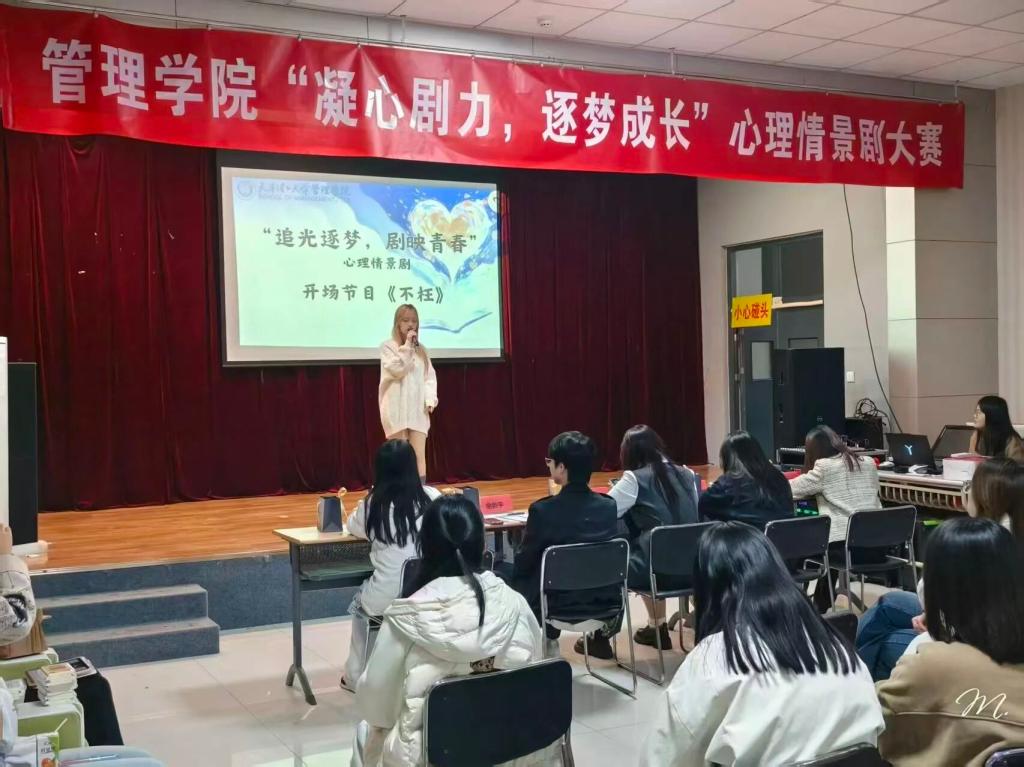 为提升学生心理健康素养,搭建一个表达内心、感知情绪的集体舞台,管理学院心理协会成功举办了“凝心聚力·逐梦成长”心理情景剧大赛。