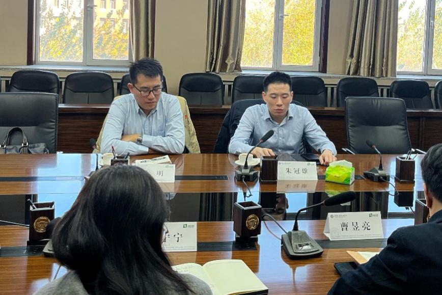 管理学院副院长曹昱亮首先对朱冠雄行长一行的到来表示热烈欢迎,并详细介绍了我院发展历程和学科特色,重点介绍了财务管理专业与金融科技专业的建设及人才培养现状。同时,结合“数字+”新文科人才培养的政策导向,强调了优化课程建设与满足行业需求对本科生培养的必要性与重要性。他表示,希望双方能够以此次交流为契机,持续在学科建设、人才培养、实习就业等方面展开深入合作交流,实现实战型创新人才的优质输出。