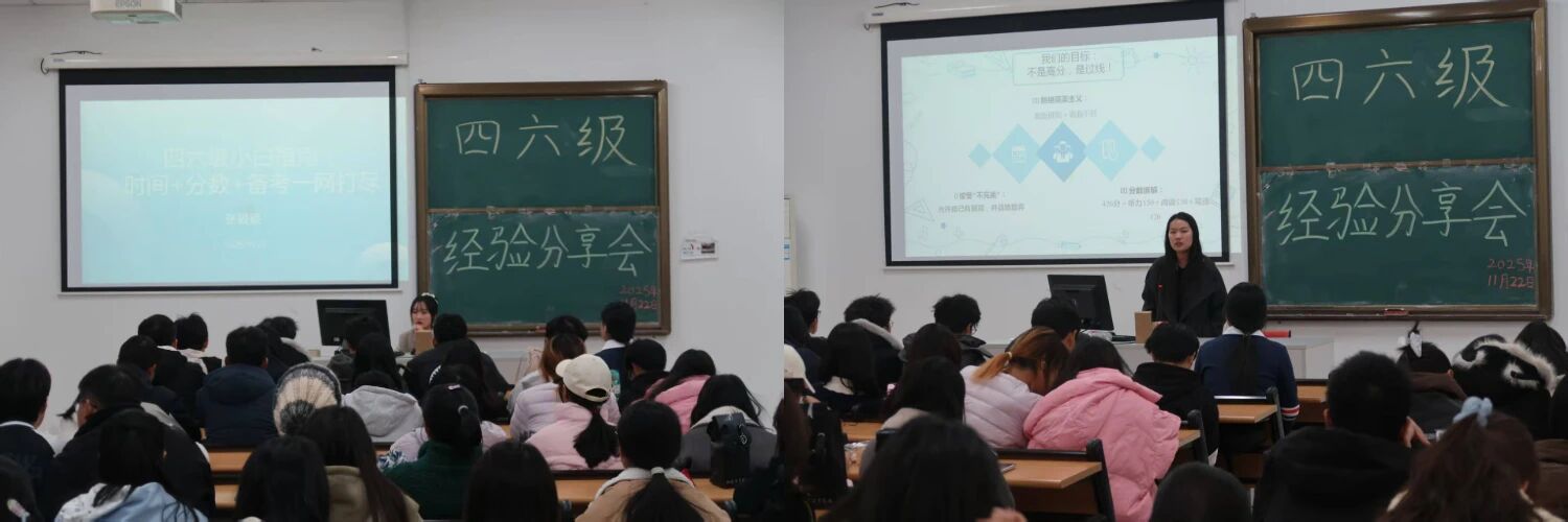 管理学院始终致力于营造浓厚的学习氛围,构建“研本互助、经验传承”的成长平台。本次四六级分享会是学院学业支持体系的重要一环,旨在帮助同学们以策略制胜,用信心应考。愿各位同学在四六级备考路上目标明确、步履坚定,终获理想高分!