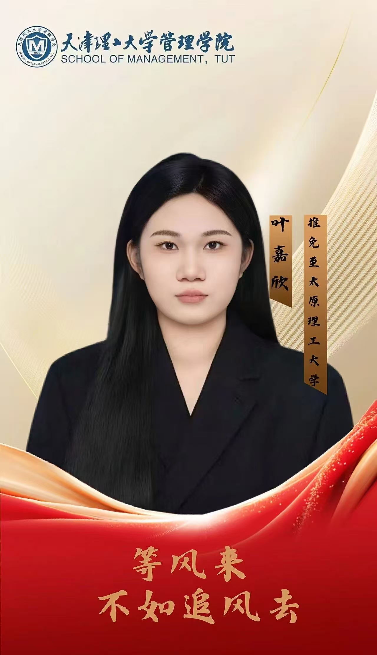 叶嘉欣,女,共青团员,汉族,天津理工大学管理学院2022级工商管理专业学生。