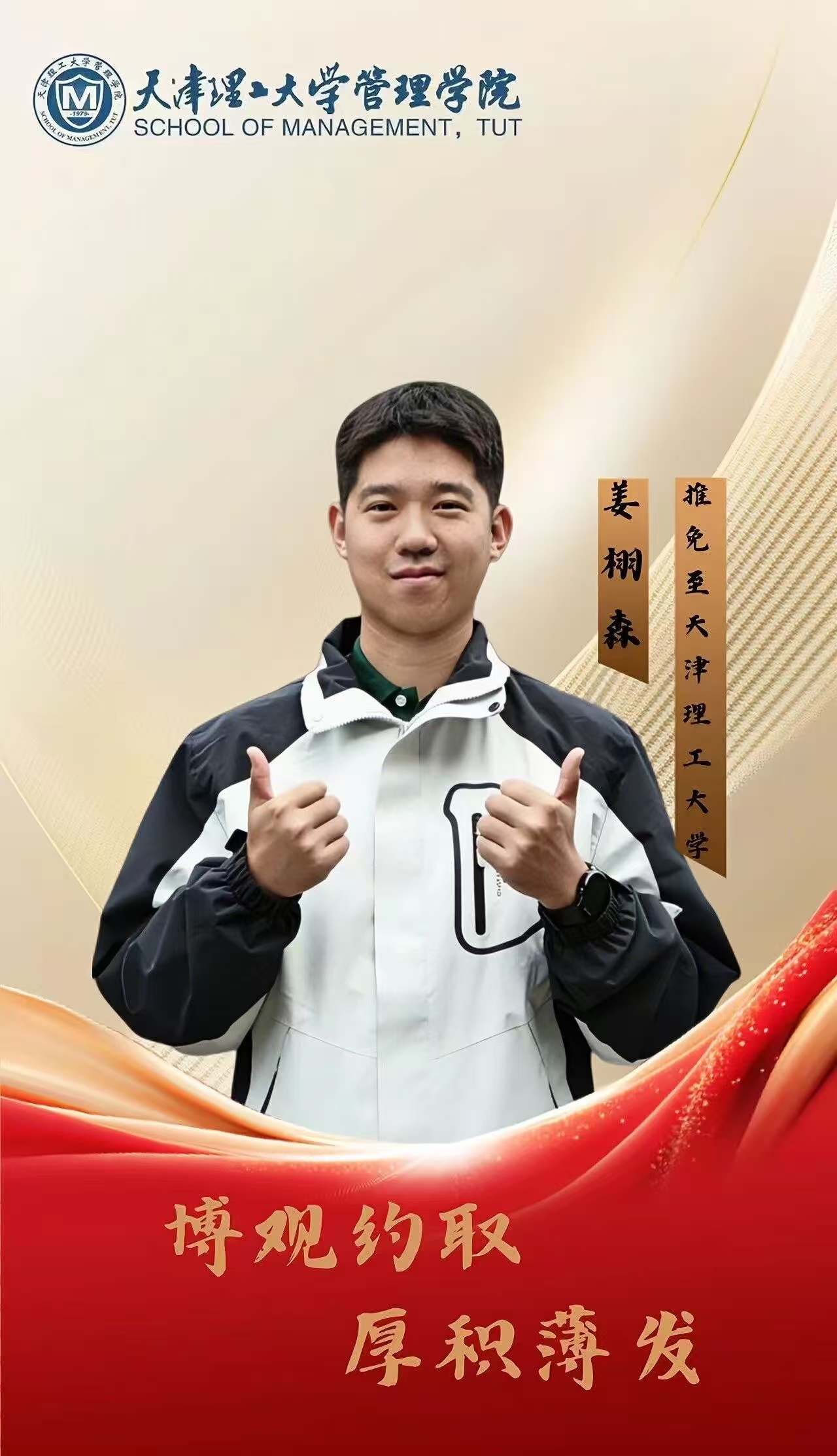 姜栩森,男,中共党员,汉族,天津理工大学管理学院2022级工商管理专业学生。