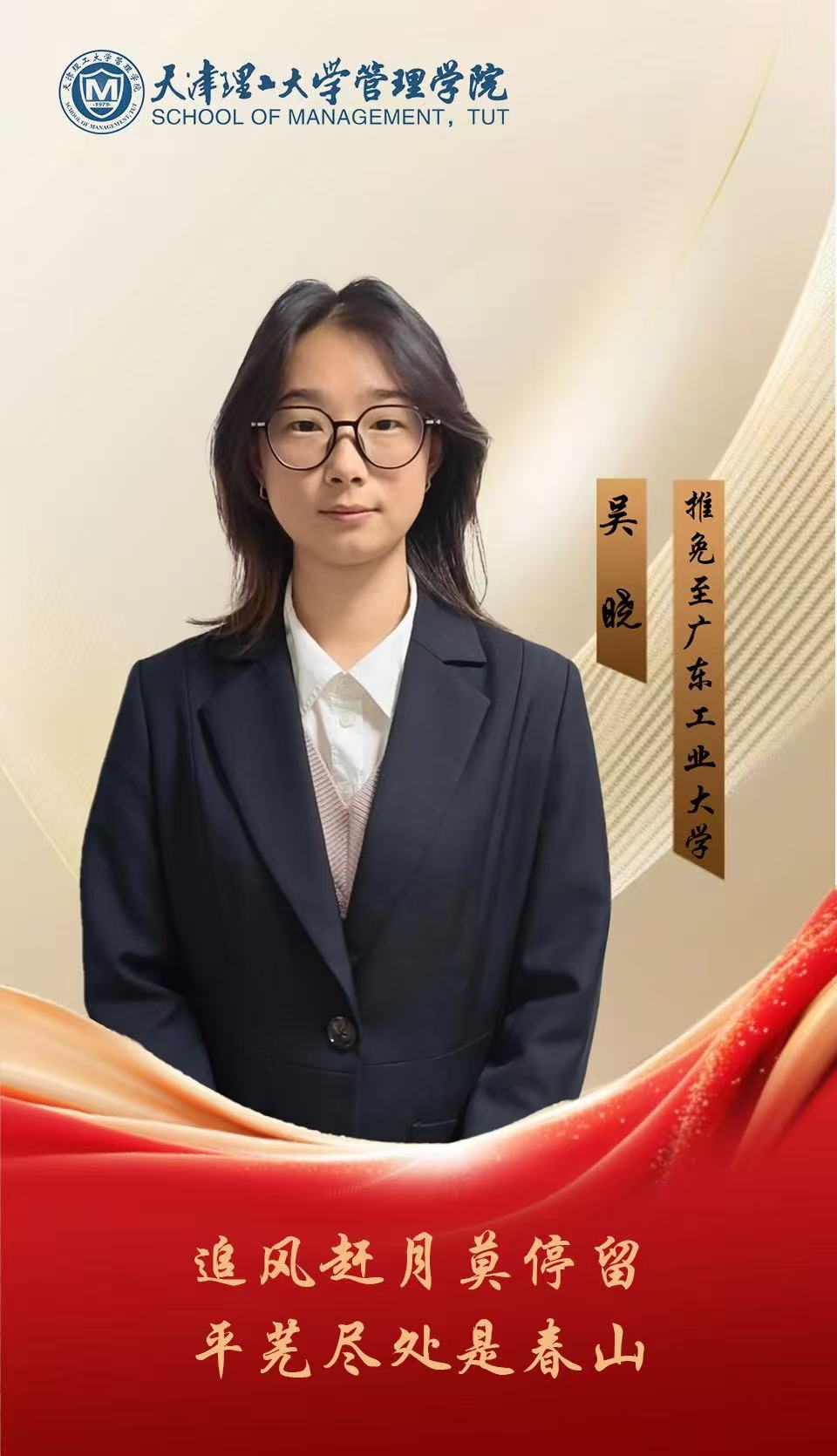 吴晓,女,汉族,共青团员,天津理工大学管理学院2022级工程管理专业学生。