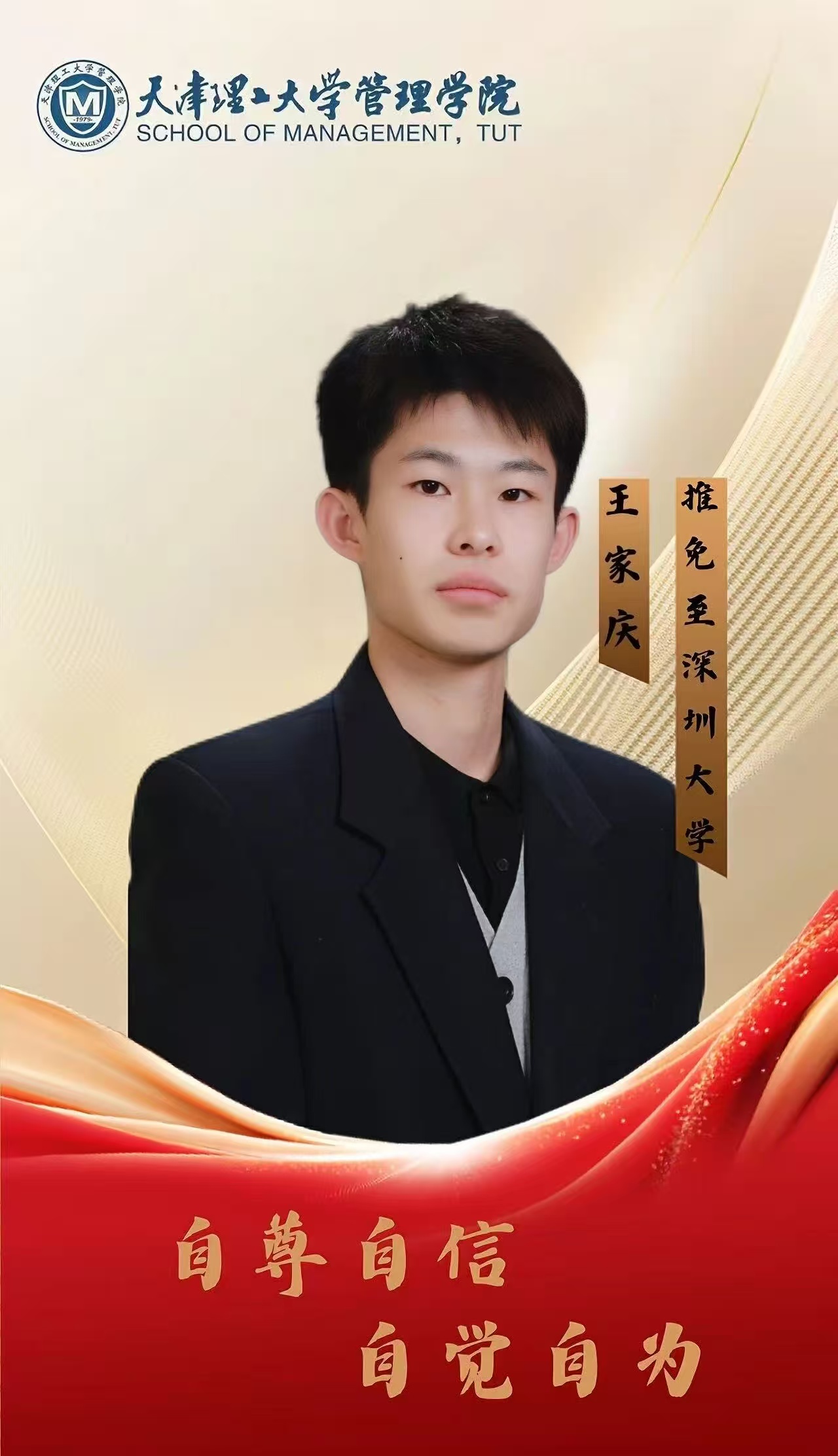 王家庆,男,共青团员,汉族,天津理工大学管理学院2022级工商管理专业学生。