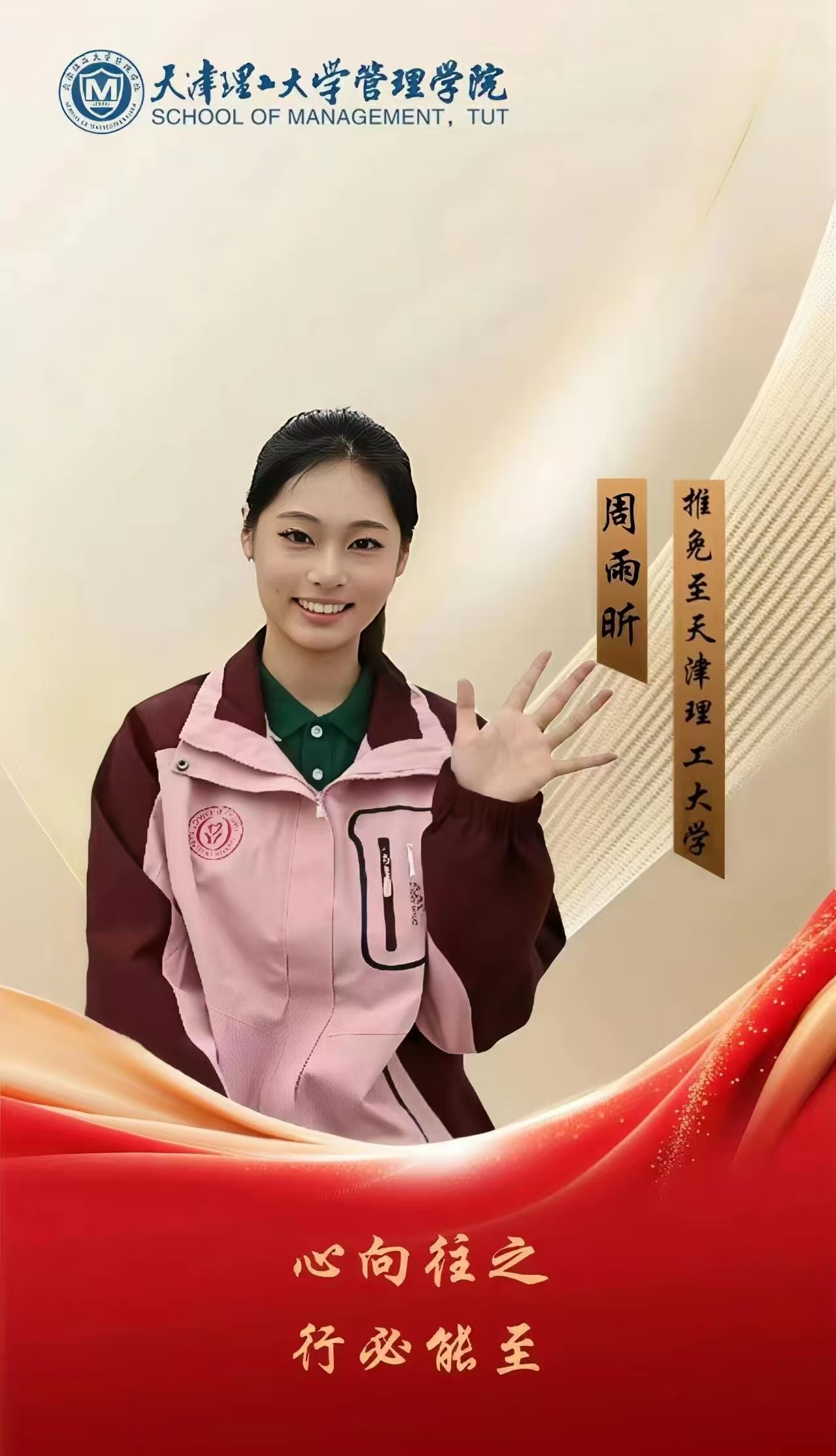 在校期间,她成绩稳居专业前列,连续三年获得人民奖学金一等奖。她积极将专业知识转化为实践能力,参与全国大学生市场调查与分析大赛获全国三等奖,参与“挑战杯”全国大学生课外学术科技作品竞赛获天津市一等奖。她聚焦学术前沿开展研究,以第一作者身份发表 EI 会议论文。现已成功推免至国防科技大学继续深造。