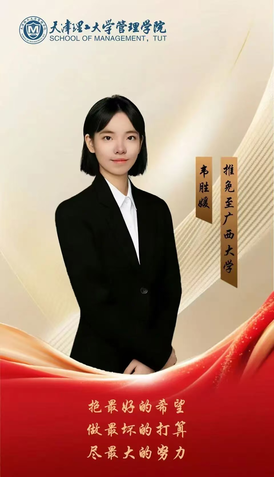 韦胜媛,女,共青团员,壮族,天津理工大学管理学院2022级工程造价专业学生。
