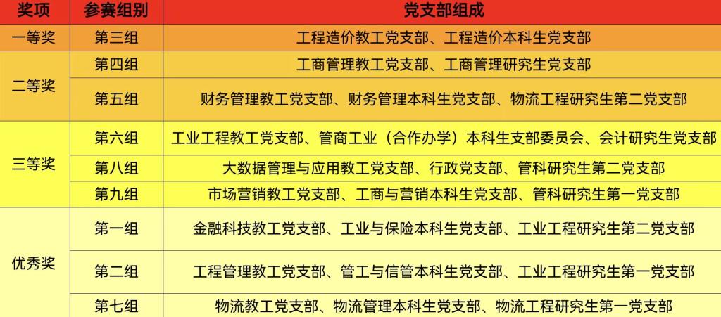 经过三轮激烈的角逐,第三组斩获一等奖,第四组、第五组荣获二等奖,第六组、第八组、第九组获得三等奖,第一组、第二组、第七组获得优秀奖。