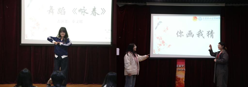 中场休息时,秦文娜同学带来一支舞蹈《咏春》,以水袖翻飞演绎“永”字八法,让“舞”与“武”在汉字里相遇。随后进行的“你画我猜”游戏,让选手在欢声笑语中“画”解汉字、“猜”中乾坤,既舒缓紧张情绪,也拉近彼此距离。