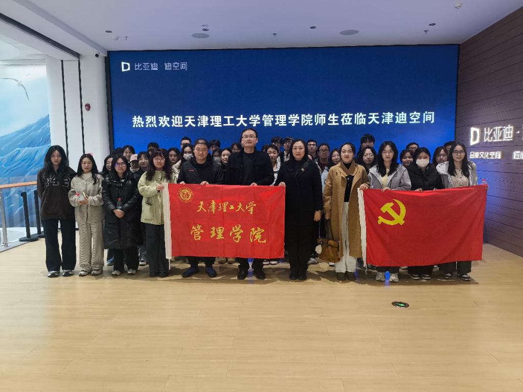 2026年是“十五五”开局之年。为深入贯彻落实“十五五”规划纲要,引导广大师生精准把握国家战略产业发展脉搏,3月19日,管理学院组织开展了“走进民族工业,领略科技魅力”主题研学活动。学院领导班子成员带领本硕学生代表50人前往天津市比亚迪·迪空间新能源汽车科普馆进行实地调研学习。