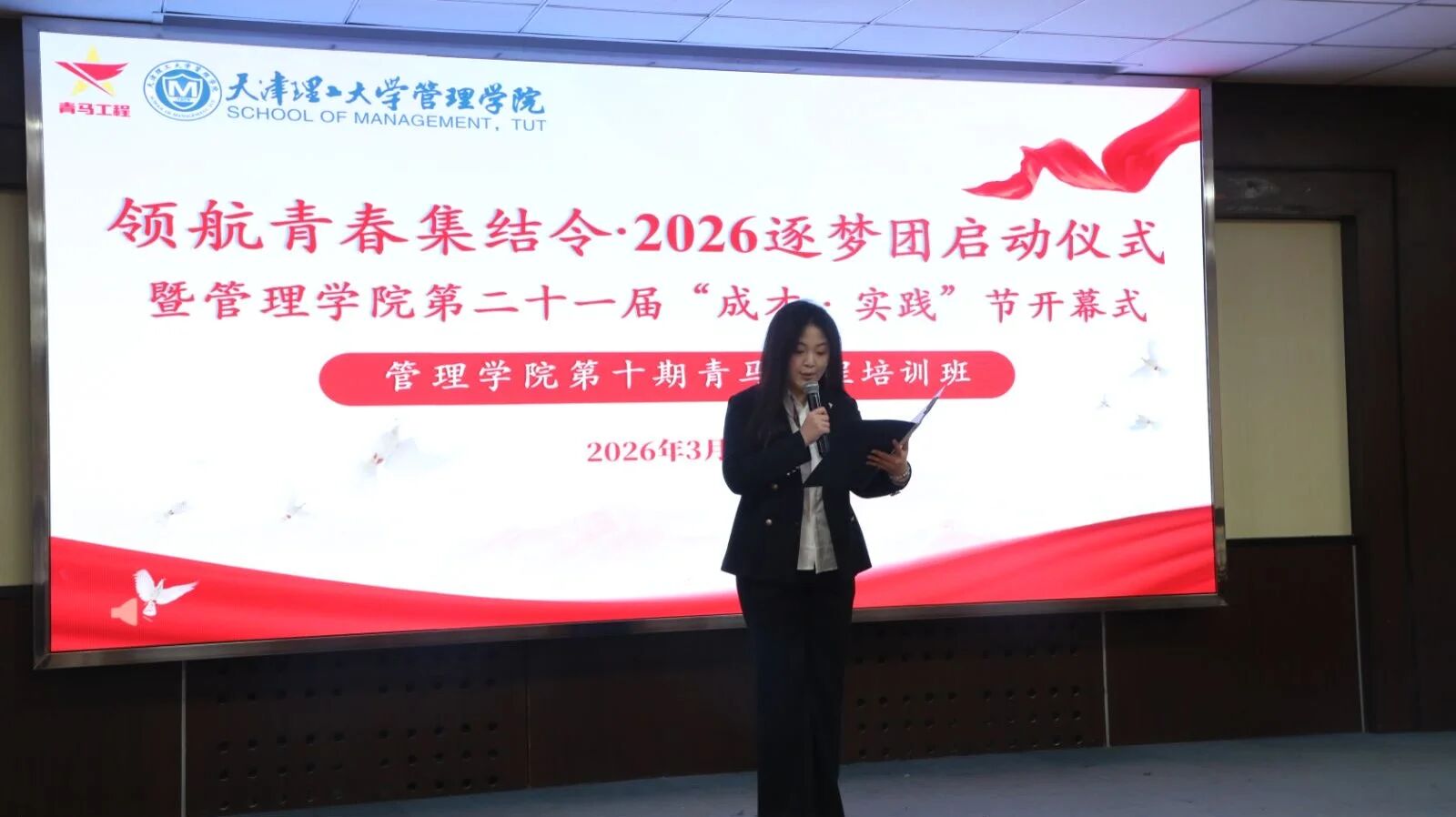 为进一步深化青年学生思想政治引领,强化思想铸魂与实践育人,引导广大青年坚定理想信念、厚植家国情怀,在艰苦实践中锤炼品德修为,努力成长为有理想、敢担当、能吃苦、肯奋斗的时代新人。3月30日,管理学院举办“领航青春集结令·逐梦团”第十期青马工程开班仪式暨管理学院第二十一届“成才·实践”节开幕式,学院团委书记、青马班导师团、朋辈导师以及全体青马学员参会。