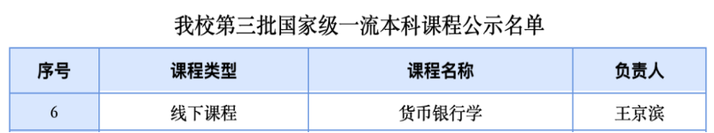 我院王京滨教授团队申报的《货币银行学》课程获第三批“线下国家级一流本科课程”。截至目前,学院拥有国家级一流课程3门,市级一流课程3门,校级一流课程7门,形成了“国家级、市级、校级”三级梯度的一流课程建设体系。