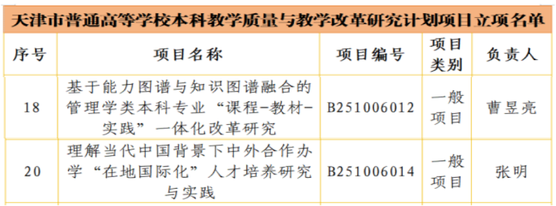 学期伊始,天津市教委正式发布《市教委关于公布天津市普通高等学校本科教学质量与教学改革研究计划项目(2025)立项结果的通知》(津教高函〔2026〕4号),我院共获批一般项目立项2项,实现“开门红”,充分展现了我院在本科教学改革与质量提升方面的扎实基础与持续推动力。